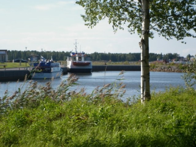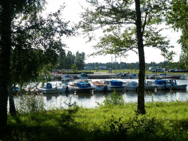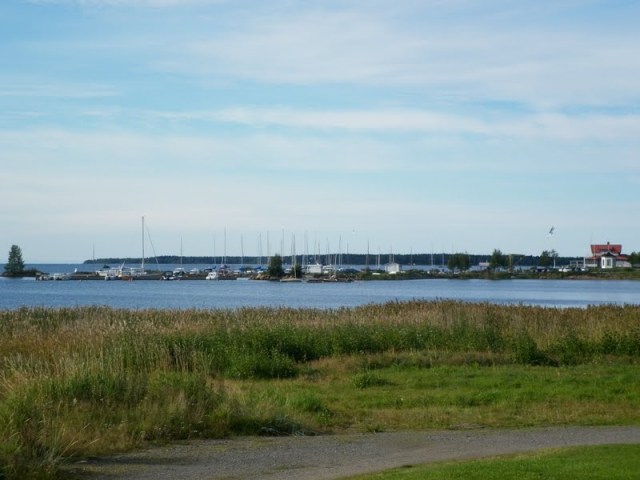 Vastarannalla näkyy pienvenesatama Kokkolan Meripuistossa.