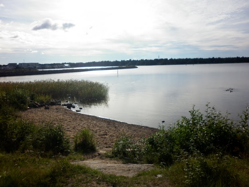 Maisema muuttuu äkkiseltään hyvin hiekkaiseksi ja tajuan olevani Halkokarin uimarannalla! Vuosia sitten tämä paikka oli yksi kaupungin suosituimmista uimarannoista. Nyt ranta on hiljainen ja pitkän heinikon täyttämä. Uimarit ovat siirtyneet vastakkaiselle Vanhansatamanlahdelle polskimaan. Halkokarin uimarannalla iltaa istuu usein nuoriso…