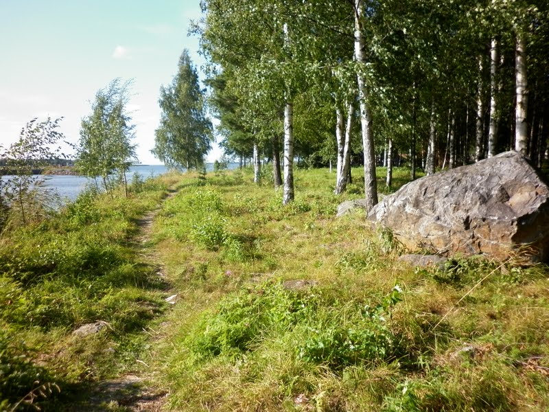 Polku kapenee rannan tuntumassa. Nyt näen edessäni jo merenlahden!